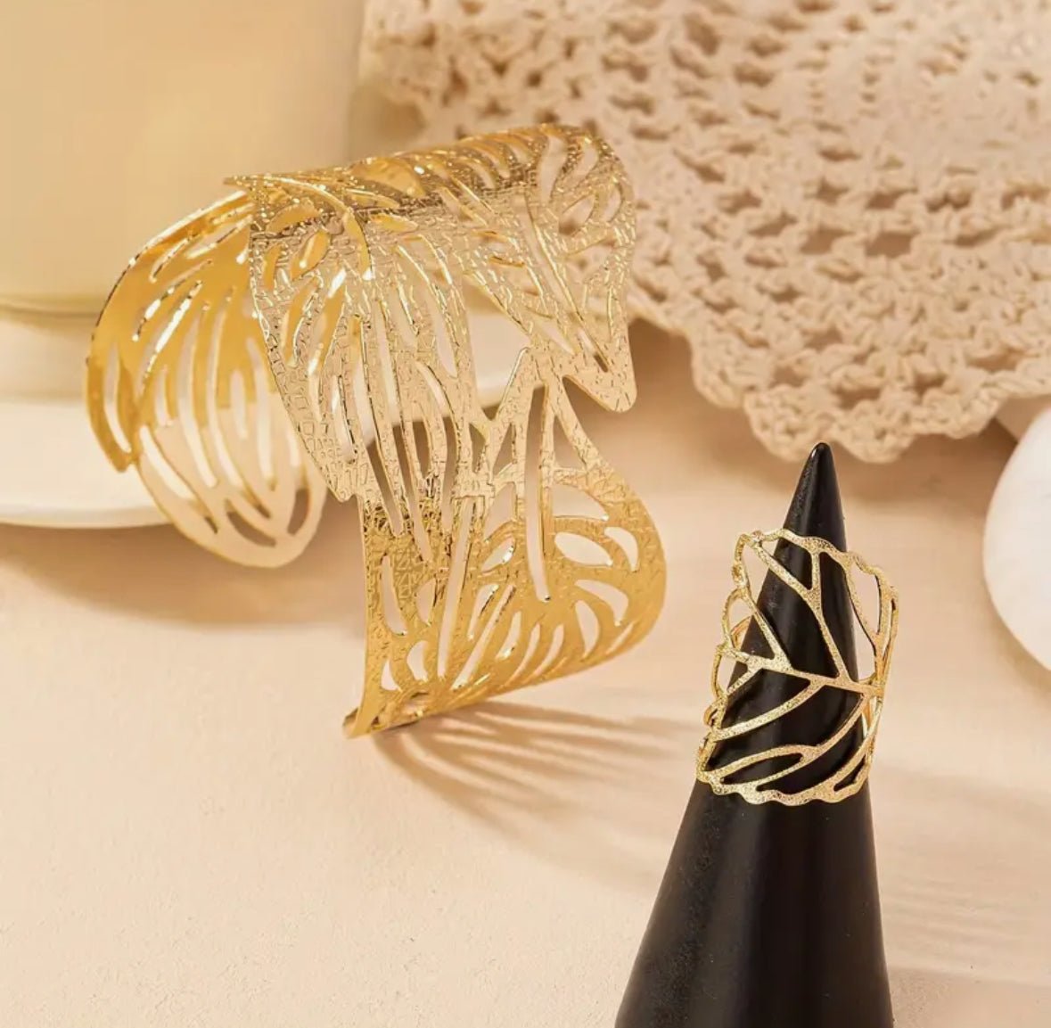 Combo Brazalete con Anillo Hojas